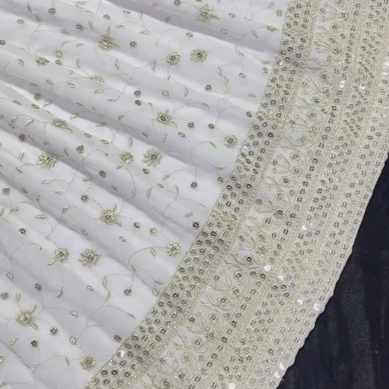 SF201484SHAFNUFAB Women's Georgette Ethnic Wear for Women Stitched Sharara Salwar Suit SF201484 Diwali Outfit Bridal White Colour Indian Casual Wear Salwar Suit IN Eid