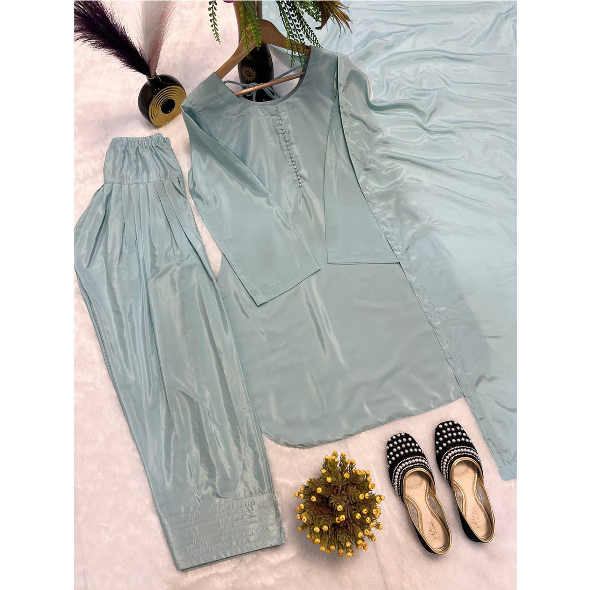 SHAFNUFAB WOMEN'S Art Silk Stiched Suit (SF251197-M SIZE Grey Medium )