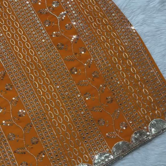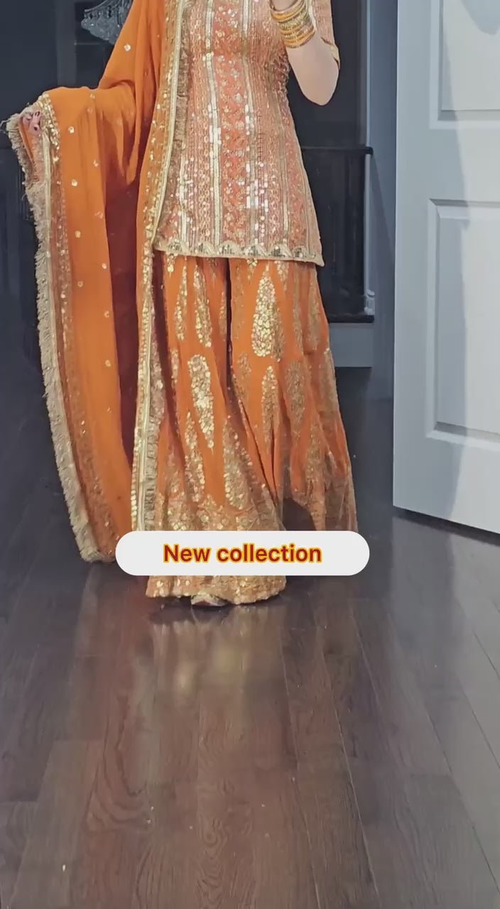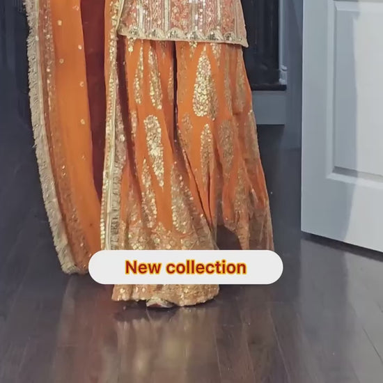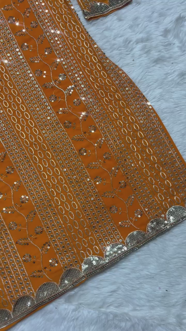 SHAFNUFAB Women's Georgette Ethnic Wear for Women Stitched Palazzo Salwar Suit SF201490 Diwali Outfit Bridal Orange Colour Indian Casual Wear Salwar Suit IN Eid