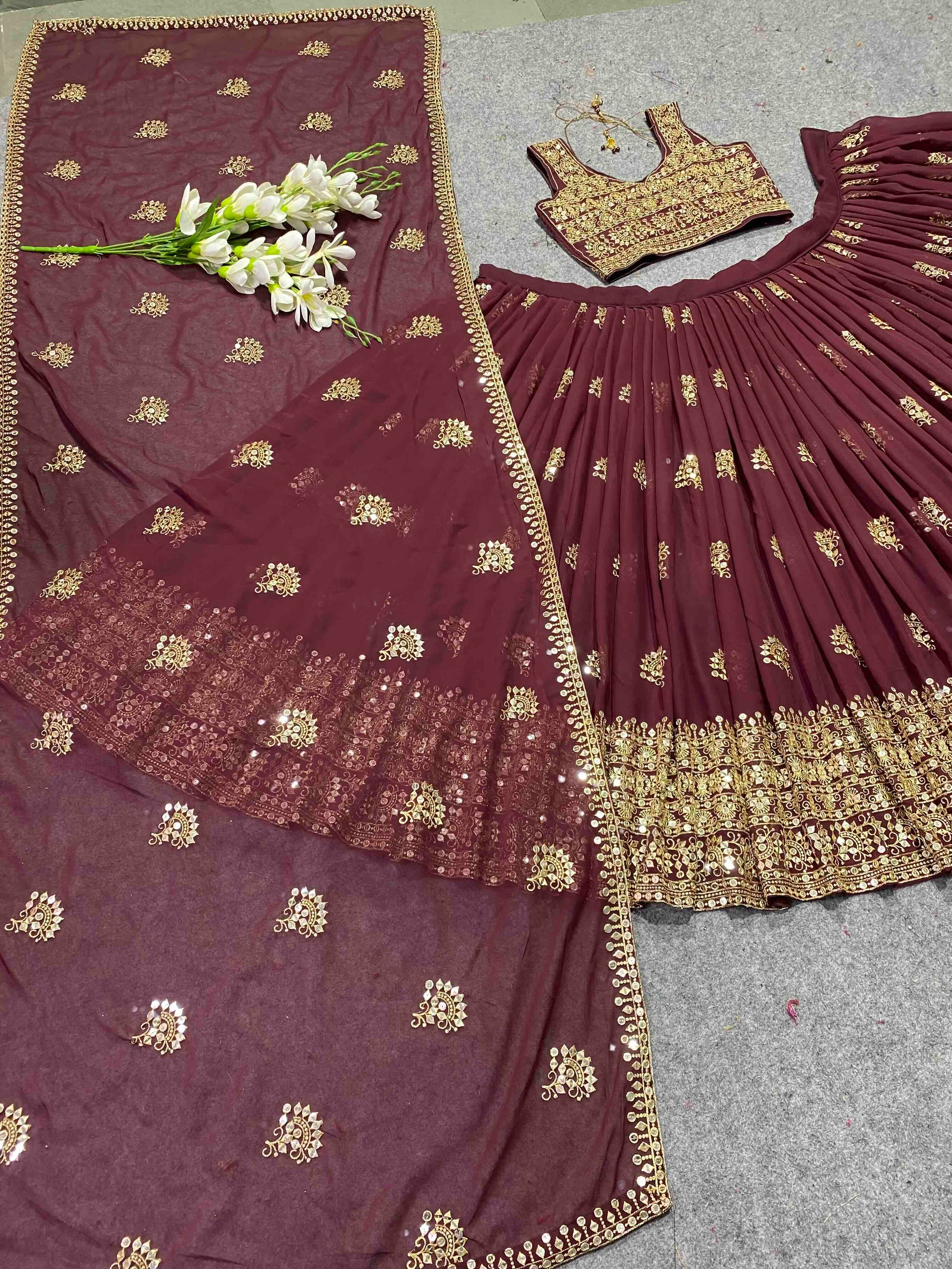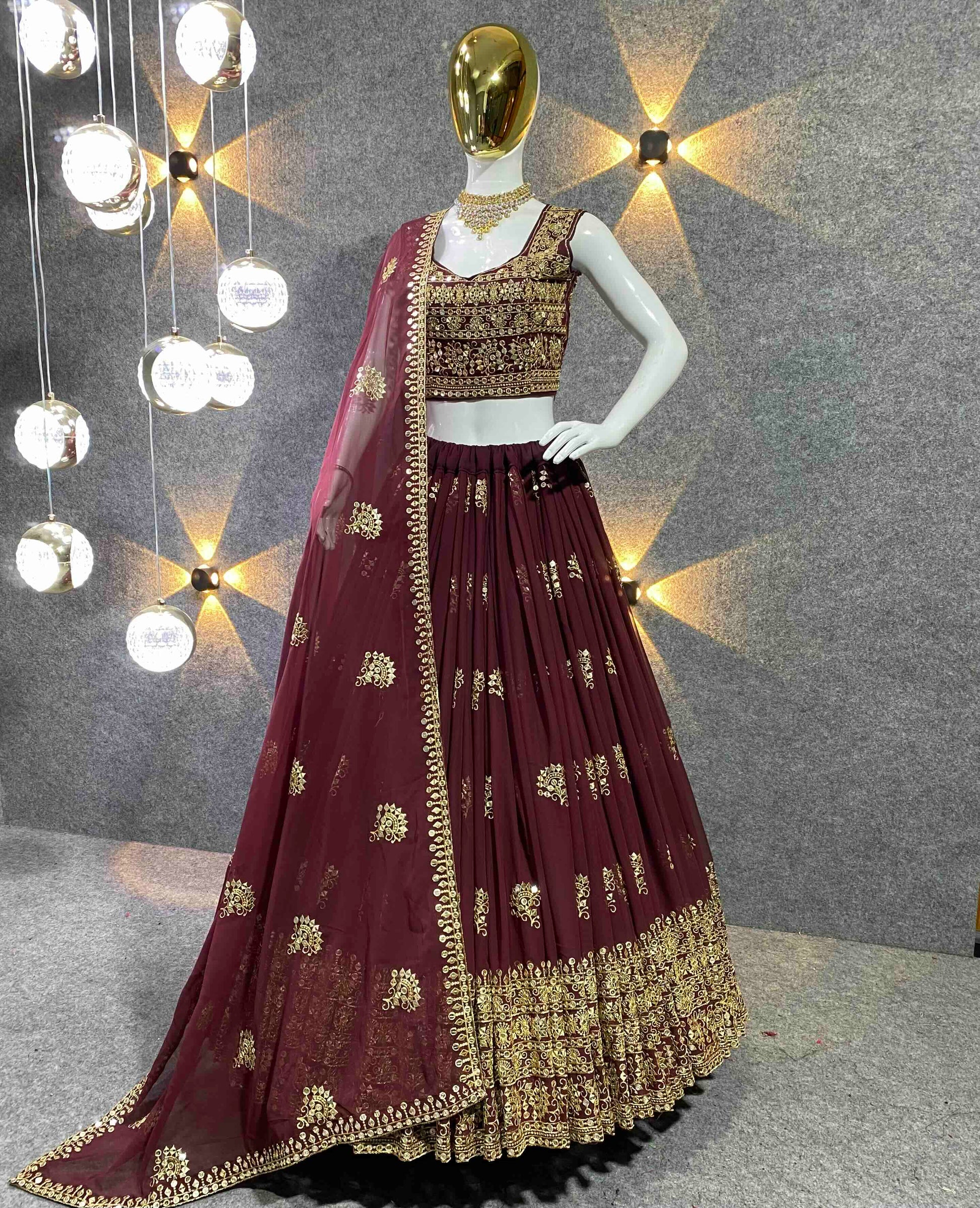 Shafnufab Women's Georgette Semi-Stiched Lehenga Choli( SF201400 Maroon Free Size )
