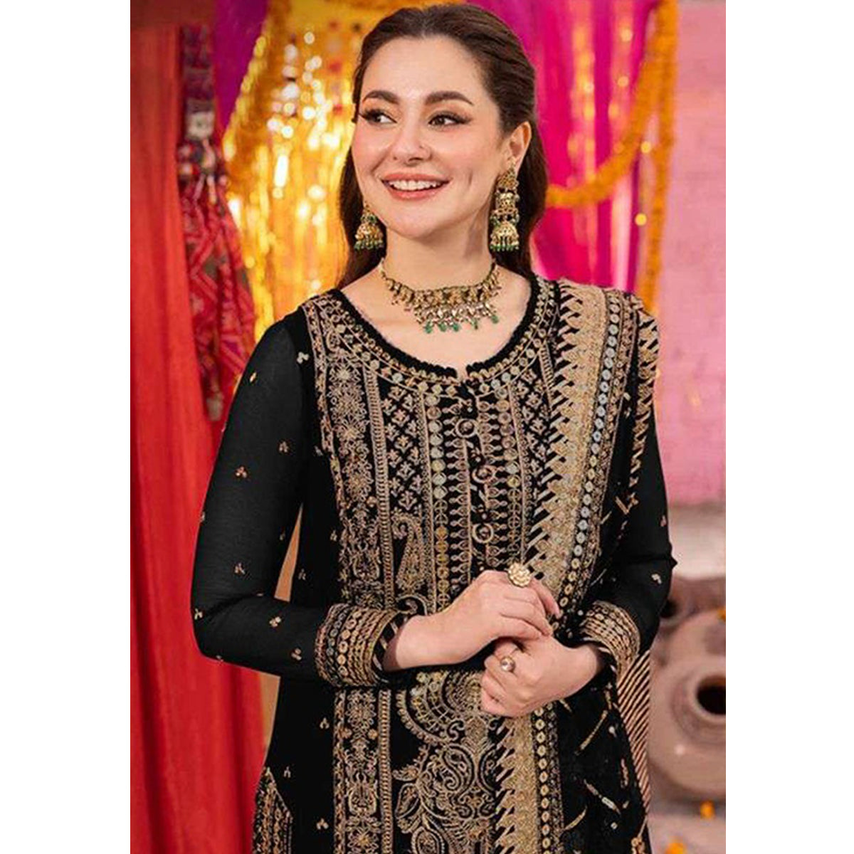 Shafnufab Women's Georgette Semi Stitched Pakistani Suit And Anarkali Suit In black Colour SF27151