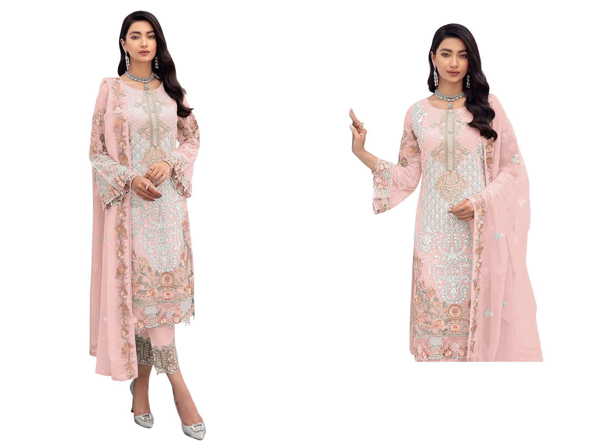 SHAFNUFAB Women's Georgette Ethnic Wear for WomenSemi StitchedSalwarSuit SF201325 Diwali Outfit Bridal Pink1 Colour Indian CasualWearSalwarSuit IN Eid