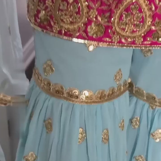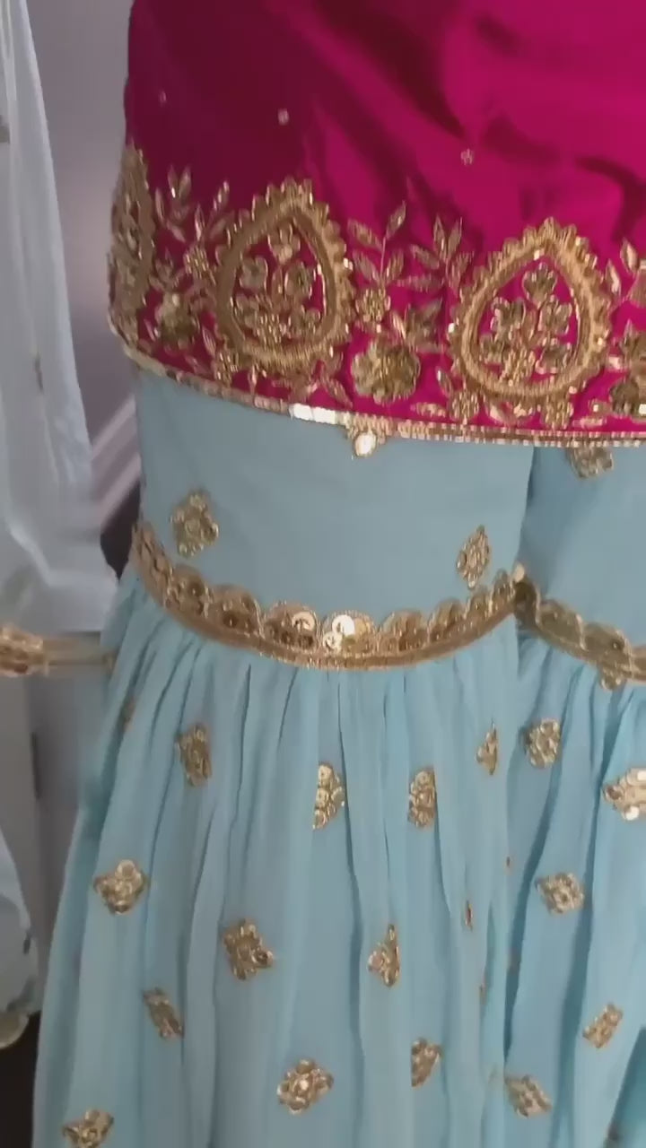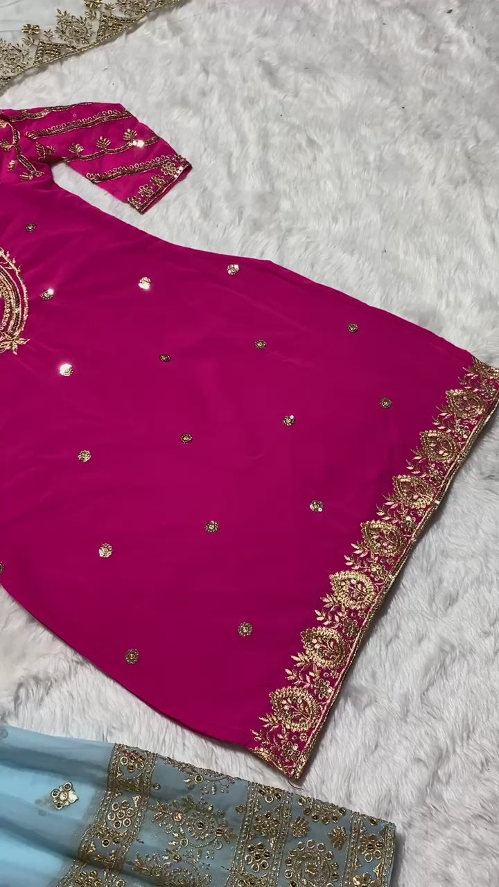 SHAFNUFAB WOMEN'S Georgette Stiched Suit (SF25154 Light Blue Free-Size )