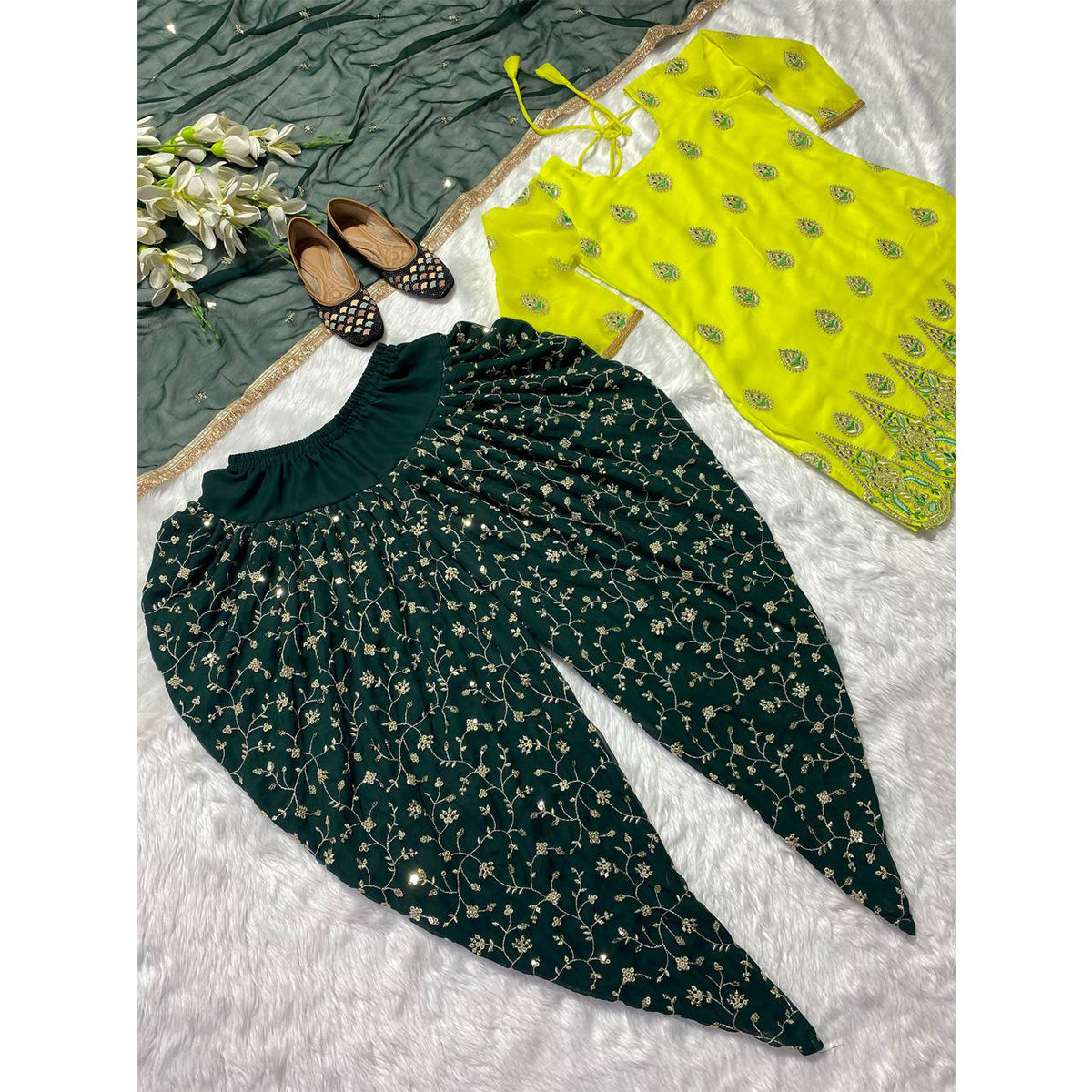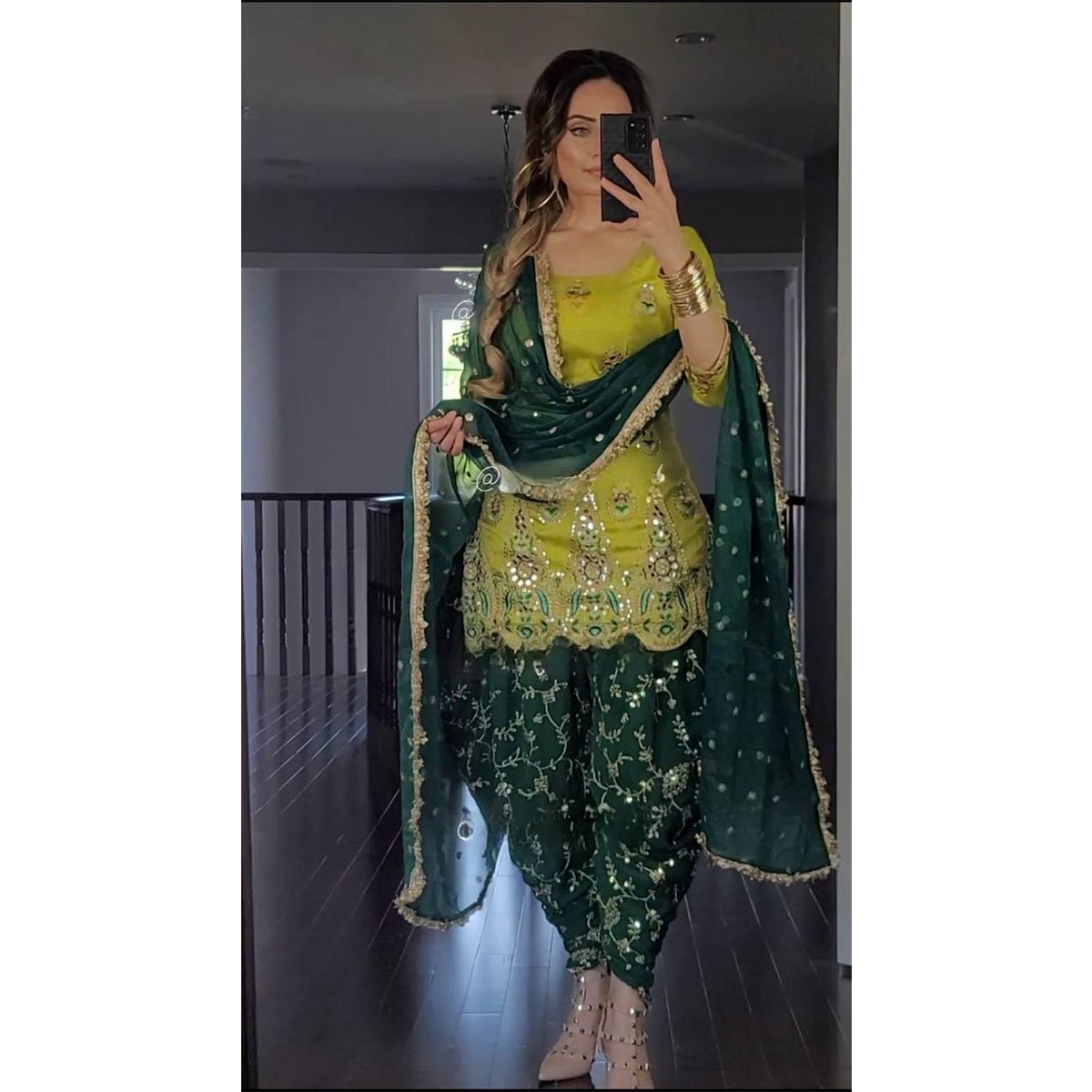 DHOTI SALWAR SHUIT Detail DHOTI SALWAR SHUIT Top Fabric:- Faux Georgette DHOTI SALWAR SHUIT Top Size:- Up To 42 Xl Free Size *(Fully Stiched) DHOTI SALWAR SHUIT Top Length :- 36 Inches DHOTI SALWAR SHUIT Top Inner:- Silk DHOTI SALWAR SHUIT Plazzo Fabric:- Faux Georgette DHOTI SALWAR SHUIT Plazzo Inner:- Silk DHOTI SALWAR SHUIT Plazzo Flair:- Xl size and Length is 43-44 DHOTI SALWAR SHUIT Dupatta Fabric:- Faux Georgette DHOTI SALWAR SHUIT Dupatta Length :- 2.20 Mtrs