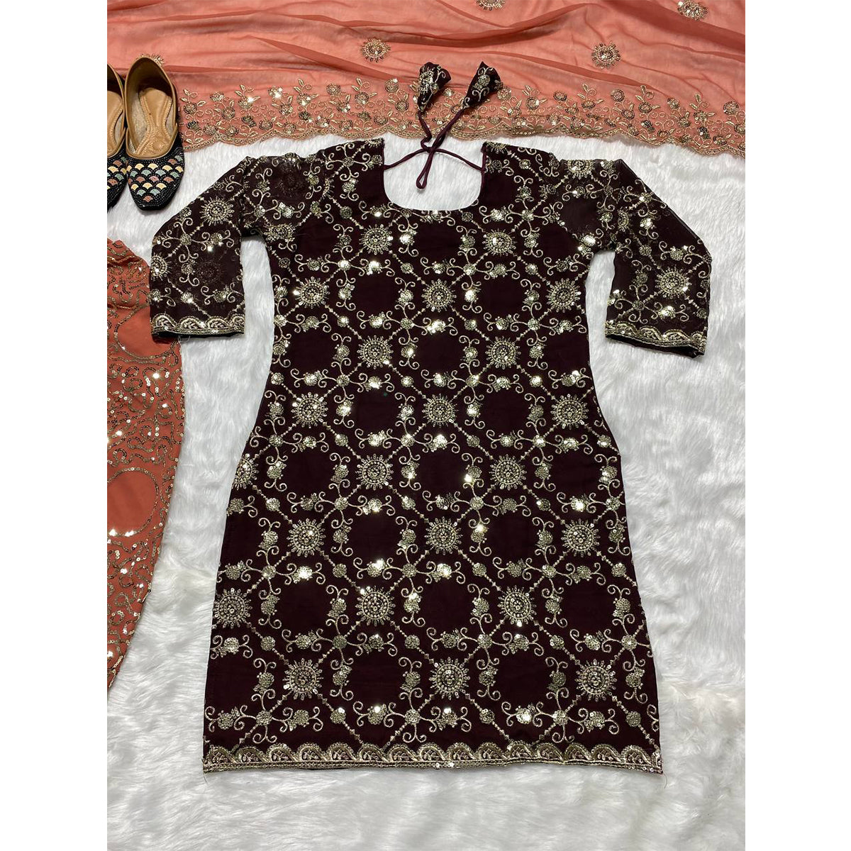 SHAFNUFAB WOMEN'S Georgette Stiched Suit (SF25158 Black Free-Size )