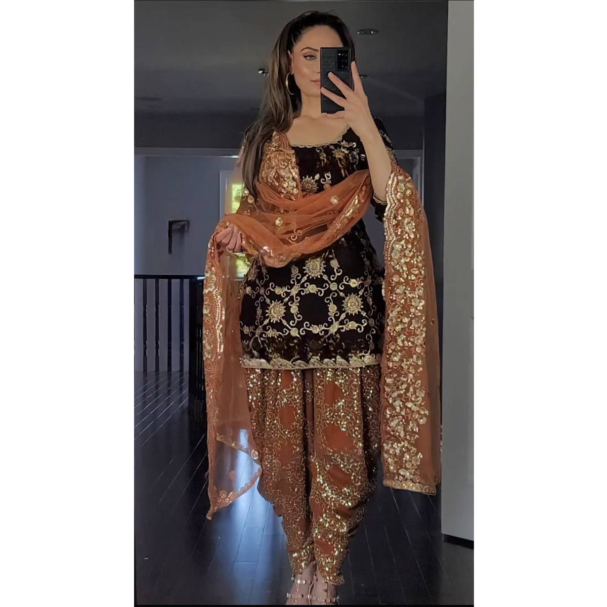 DHOTI SALWAR SHUIT Detail DHOTI SALWAR SHUIT Top Fabric:- Faux Georgette DHOTI SALWAR SHUIT Top Size:- Up To 42 Xl Free Size *(Fully Stiched) DHOTI SALWAR SHUIT Top Length :- 36 Inches DHOTI SALWAR SHUIT Top Inner:- Silk DHOTI SALWAR SHUIT Fabric:- Faux Georgette DHOTI SALWAR SHUIT Inner:- Silk DHOTI SALWAR SHUIT Flair:- Xl size and Length is 43-44 DHOTI SALWAR SHUIT Dupatta Fabric:- Faux Georgette DHOTI SALWAR SHUIT Dupatta Length :- 2.20 Mtrs