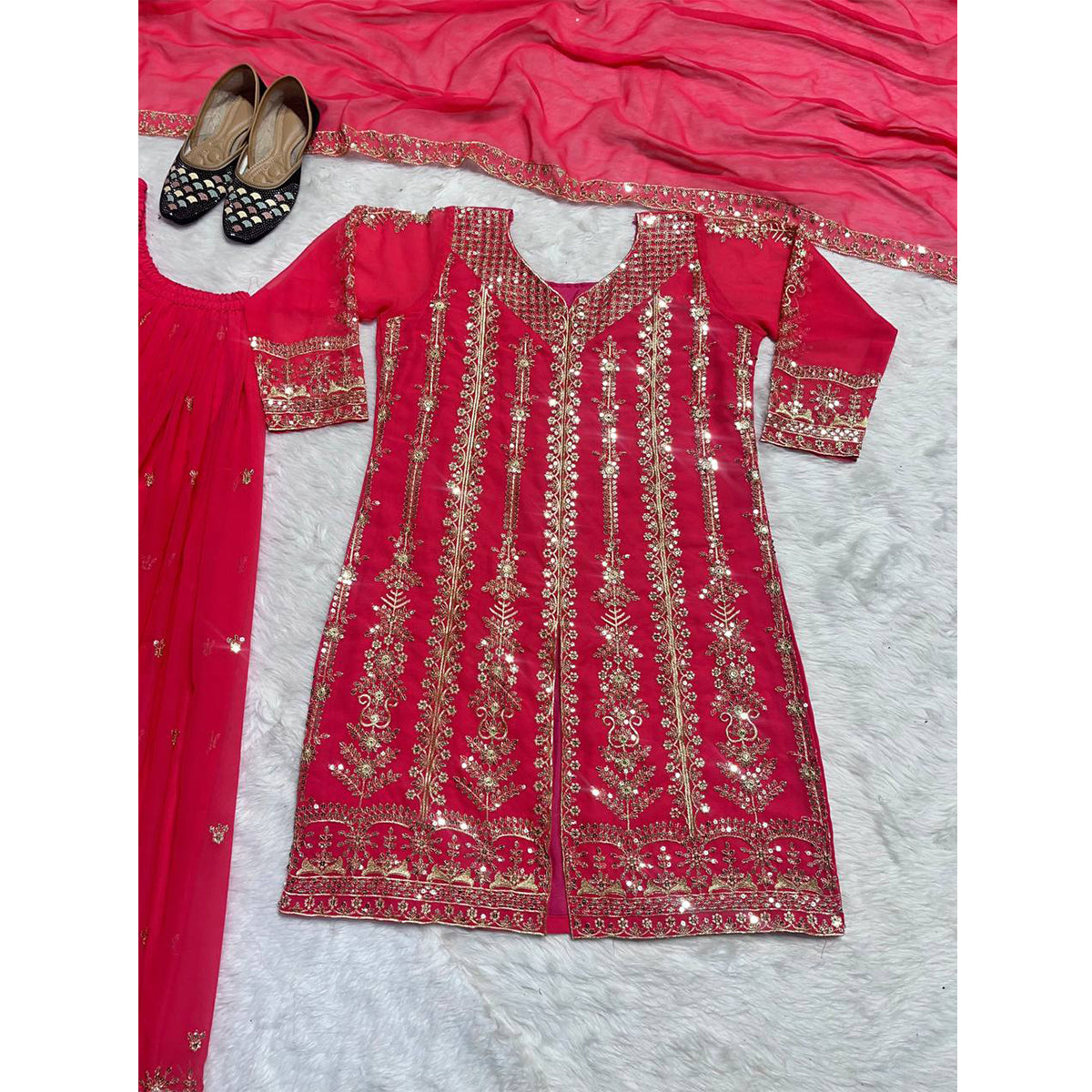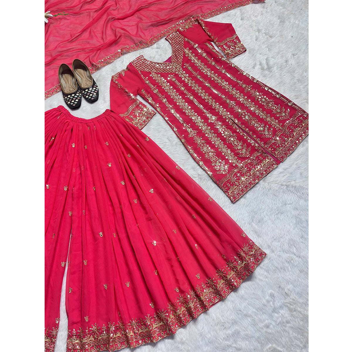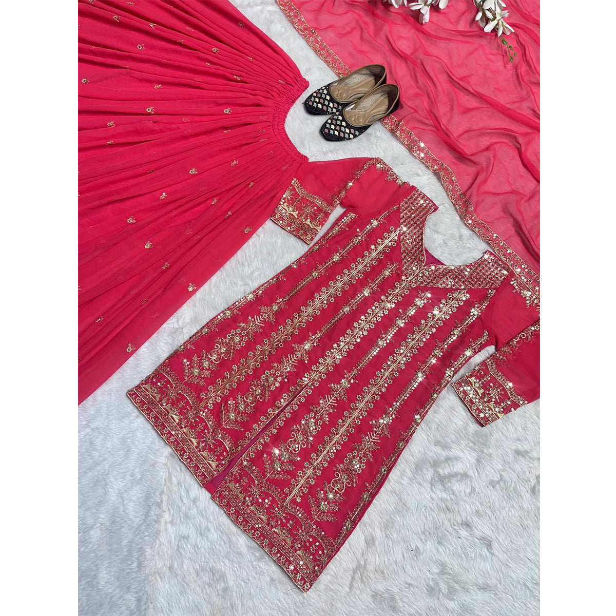 SHAFNUFAB WOMEN'S Georgette Stiched Suit (SF25184-L SIZE Pink Large )