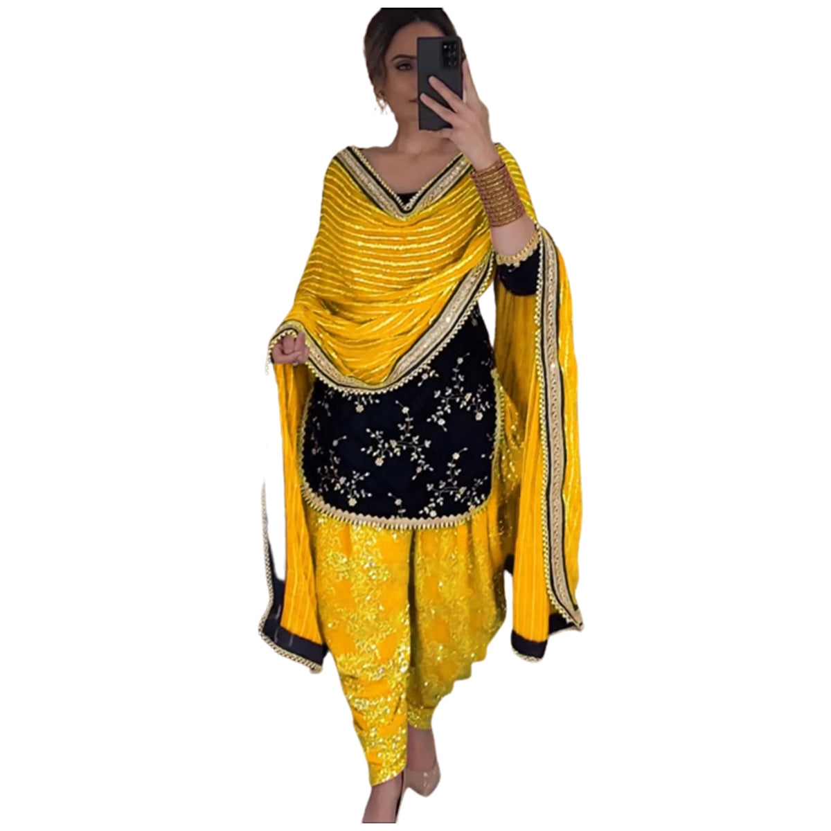 Shafnufab Women's Georgette StSHAFNUFAB Women's Georgette Ethnic Wear for Women Stitched Dhoti Salwar Suit SF201431 Diwali Outfit Bridal Yellow Colour Indian Casual Wear Salwar Suit IN Eiditched Dhoti Suit(XL Size) In Black Colour SF201431