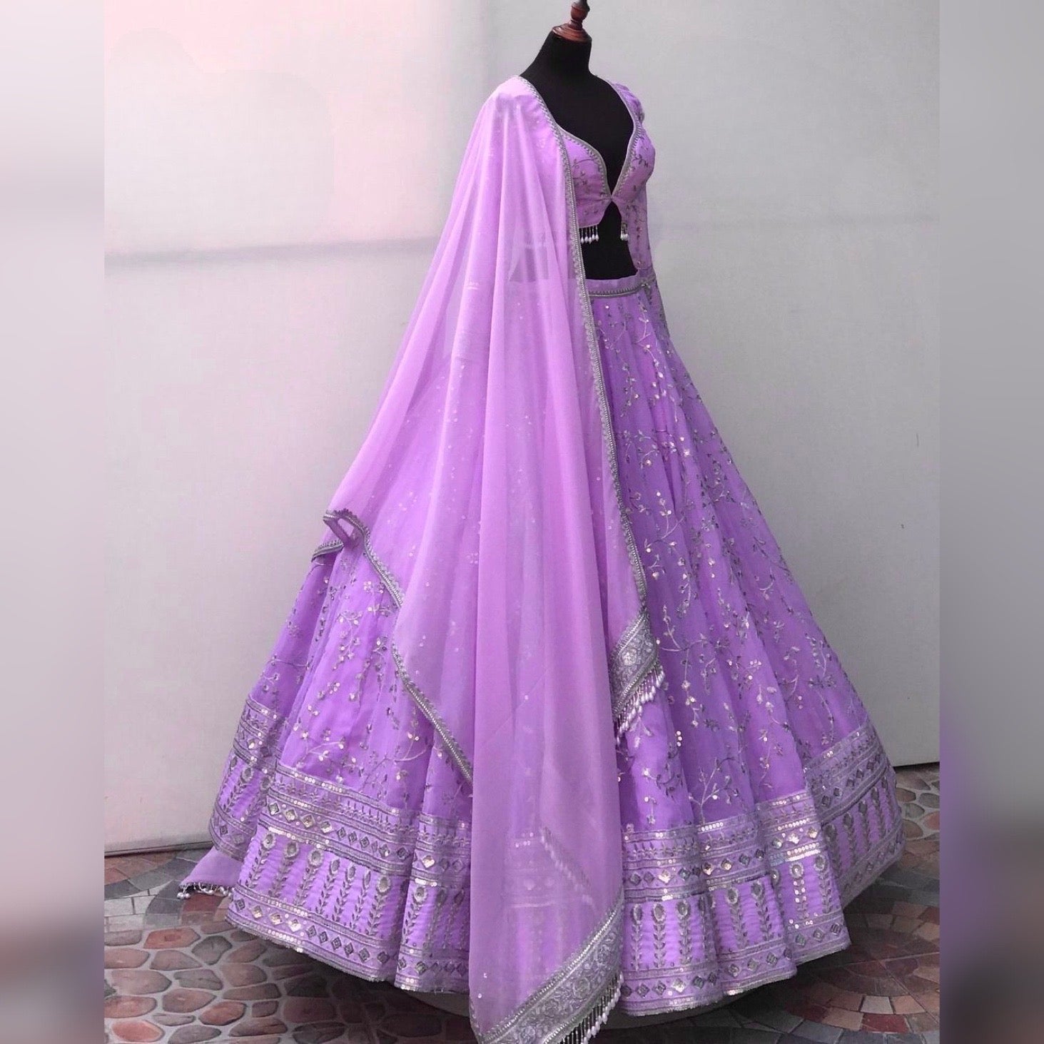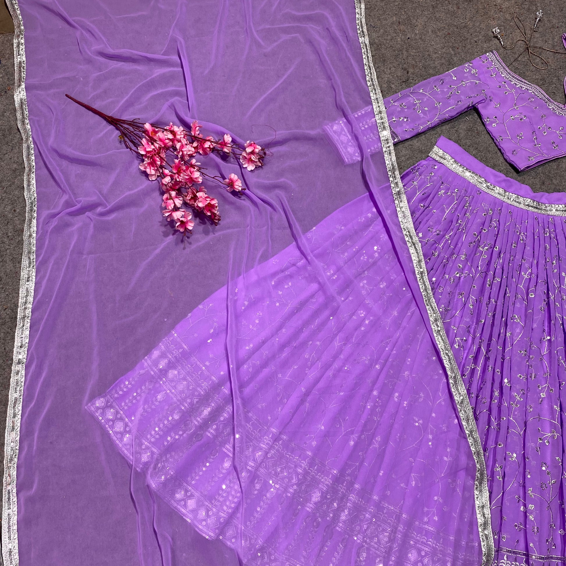 SHAFNUFAB Women's Georgette Semi Stitched lehengacholi SF201359 Diwali Outfit Embroidered lehengacholi Set Purple Colour Indian Heavy Lehenga