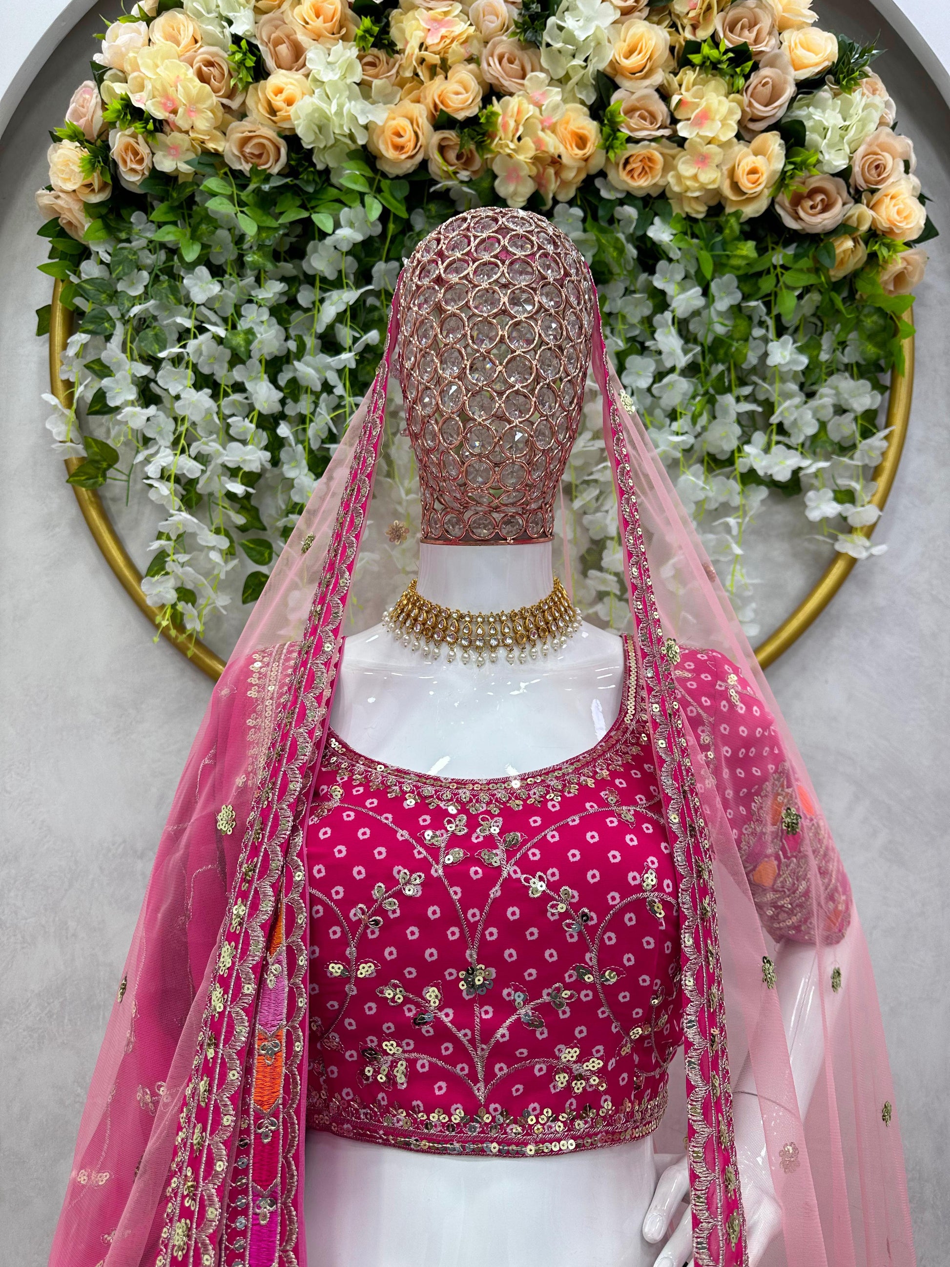 SHAFNUFAB Women's Gorgette Semi Stitched lehengacholi SF201463 Diwali Outfit Embroidered lehengacholi Set Pink Colour Indian Heavy Lehenga