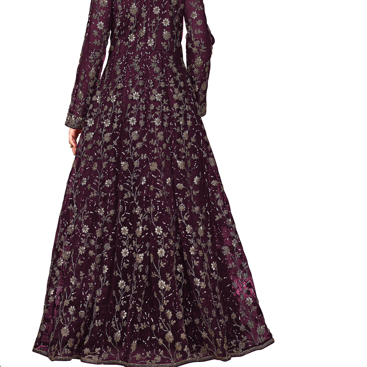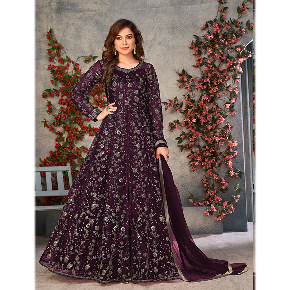 Shafnufab Women's Net Semi-Stitched Pakistani Suit For Wedding ( SF171646 _ Purple _ Free Size)